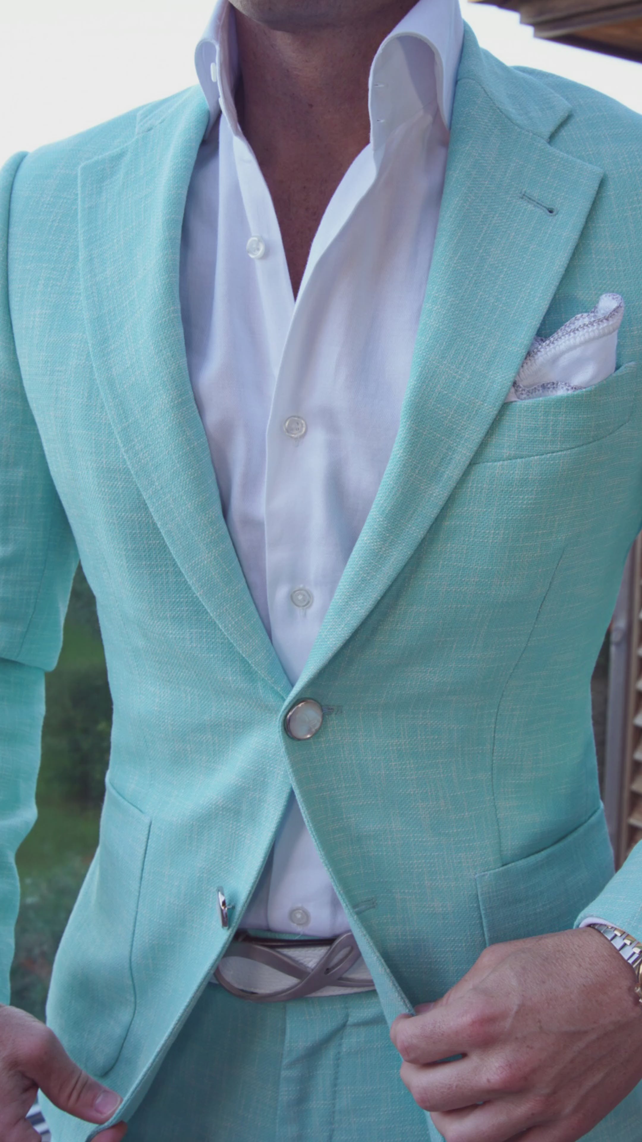 Blu Ciano Lino Tweed Ciottoli Waistcoat