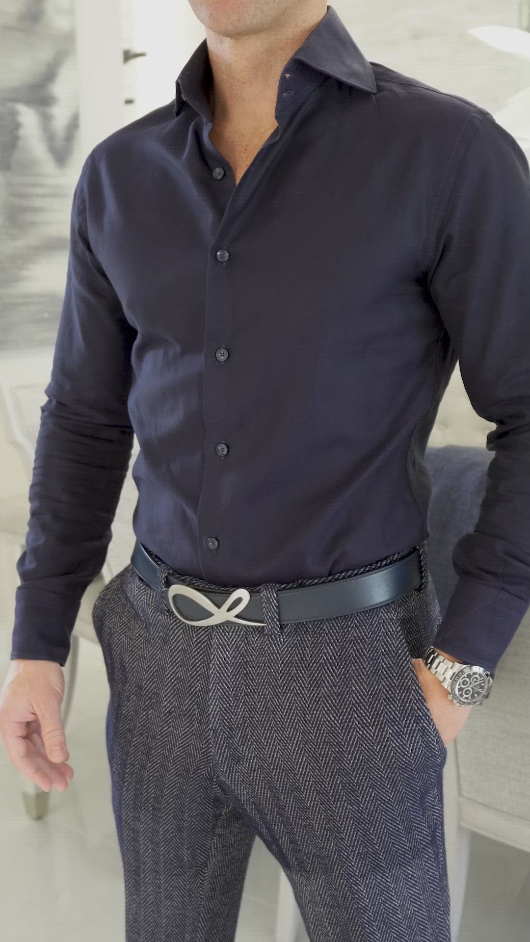 Our Blu Chevron Trousers are the handmade with the perfect Italian fabric composition for added comfort and non-wrinkle feel. Limited Collection Piece. Get the complete Sebastian Cruz Couture look today!